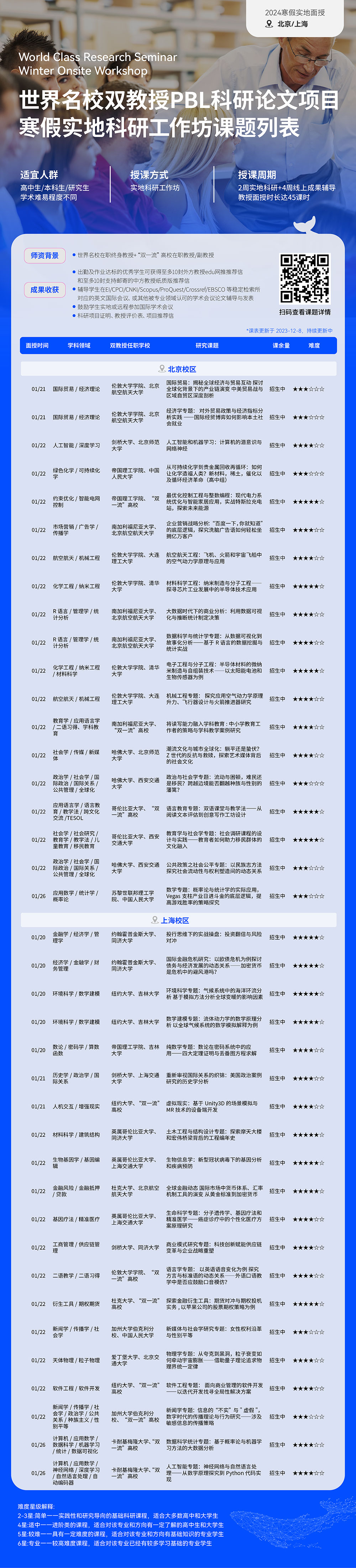 2024年1月20日开始,北京/上海双地可选,需要申请海本/海硕的准留学生以及想要考研、保研、申博的同学们千万别错过!